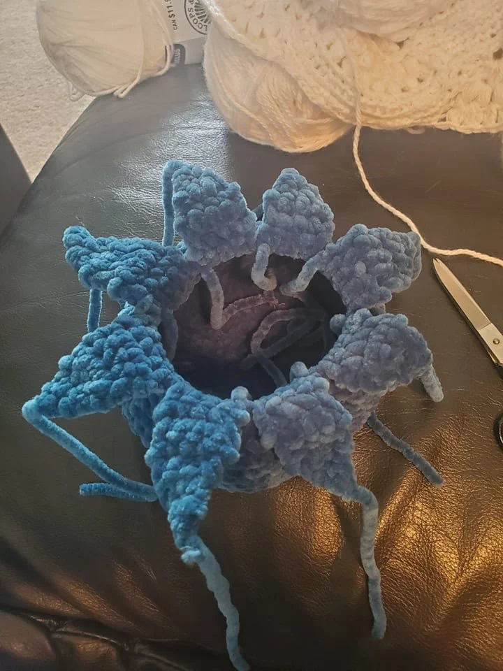 Once all your tentacles are finished, we need to sew them together. Stuff your Octo Head, but leave the tentacles unstuffed.